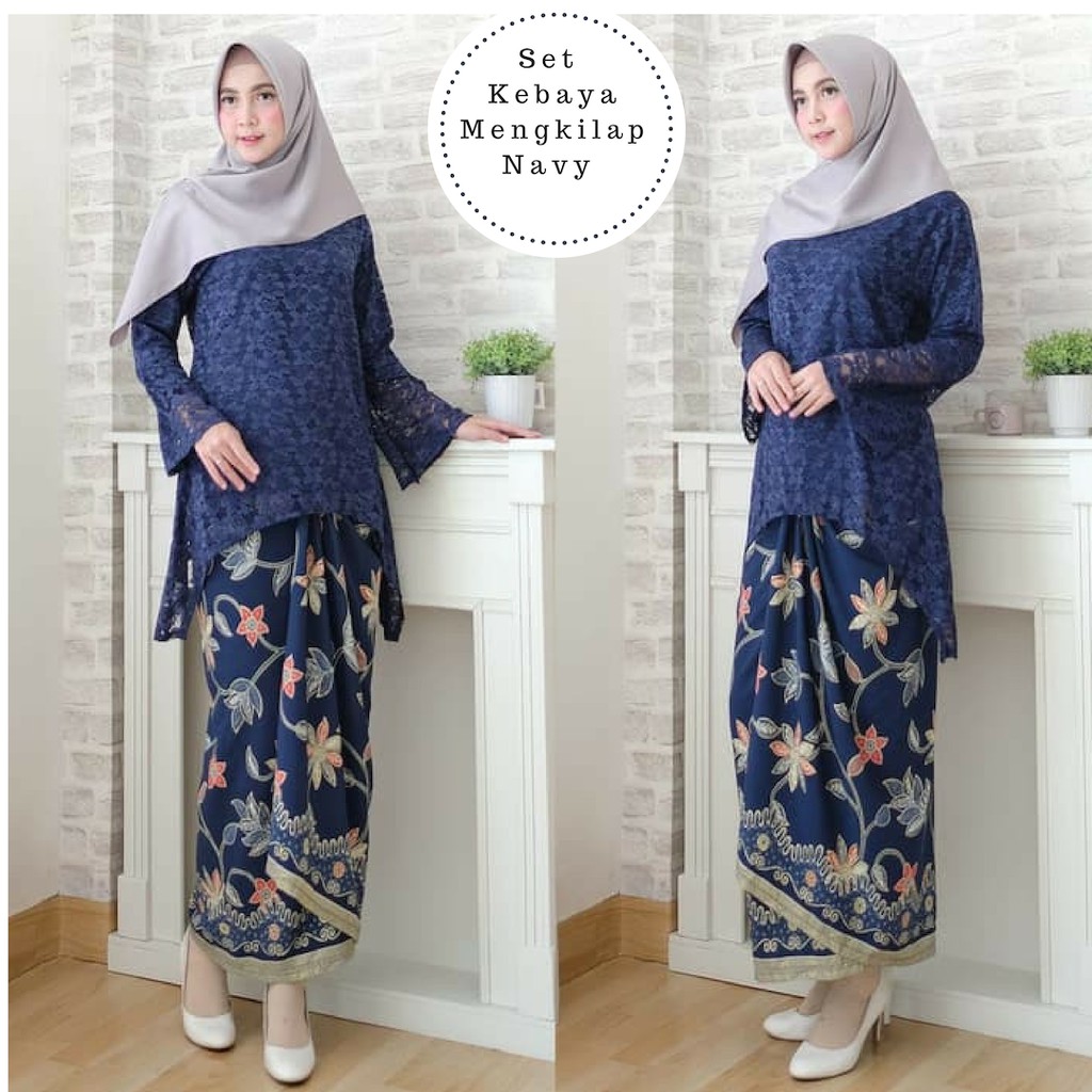 Kebaya lengan panjang ini sangat cocok untuk muslimah hanya dengan menambahkan baju manset, kerudung dengan warna senada kebaya brokat.